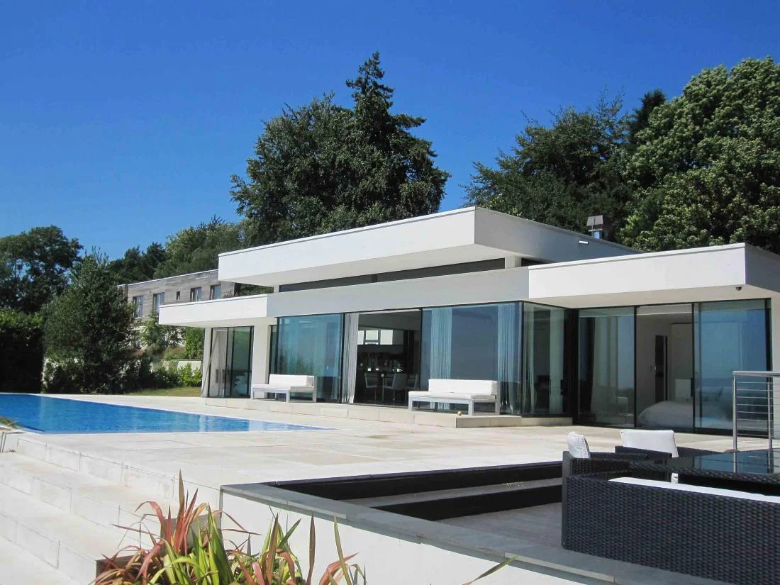 Cherry Tree is a contemporary, bright and spacious property which maximises its outstanding and uninterrupted views across the north downs through its glass walls that span the width of the ground floor.
